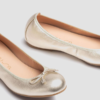 Metallic effect leather round toe gathered ballerina shoe. Soft lining and a matching tone bow on the front. Light, flexible, non-slip, rubber sole and a removable insole. You will be surprised at how comfortable and soft they are.