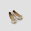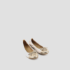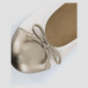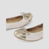 Flat round toe ballerina shoe made in embossed leather. Contrasting bronze patent leather toe. Stretch edging and patent leather bow. Removable padded insole. Non-slip, flexible and non-slip rubber sole. A comfortable and practical design for every day wear.