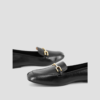 Square toe loafers made in leather. Metal trim on the vamp. Very light and flexible rubber sole. Soft fabric lining that makes them very comfortable. The essence of Unisa in its pure state.