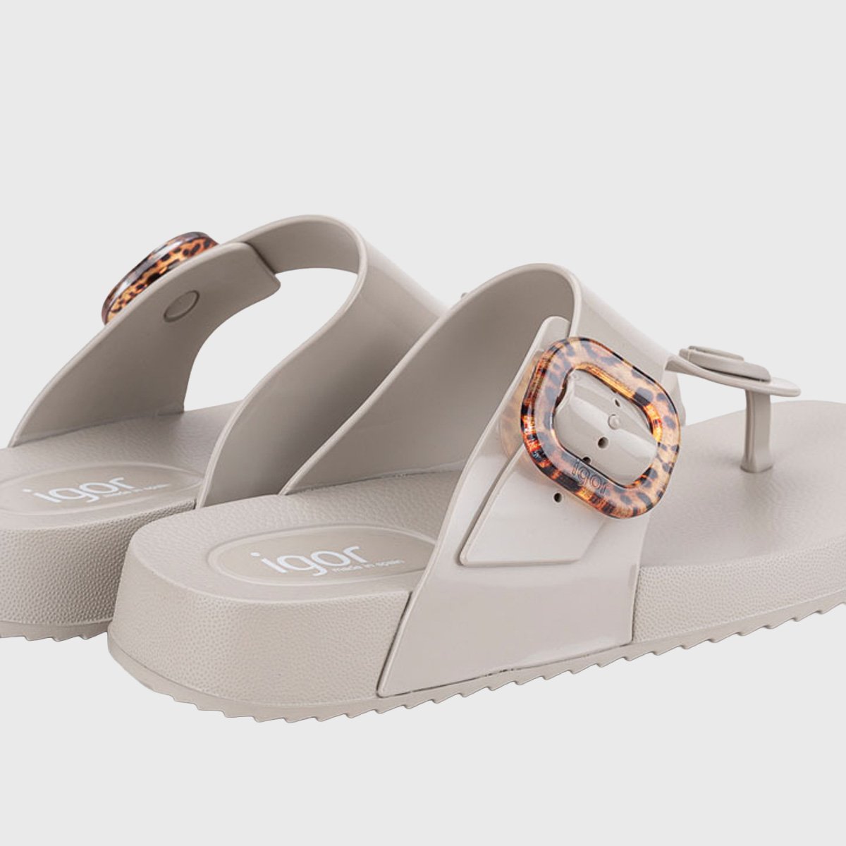 Slavic-style sandals with a gloss finish and a leopard-print buckle. Sandals with a special design, you cannot miss them!