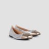 Square toe ballerina made in metallic effect leather. Matching tone leather bow trim with decorative rhinestones. Light, flexible and non-slip rubber sole. Essential to have a very personal style