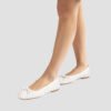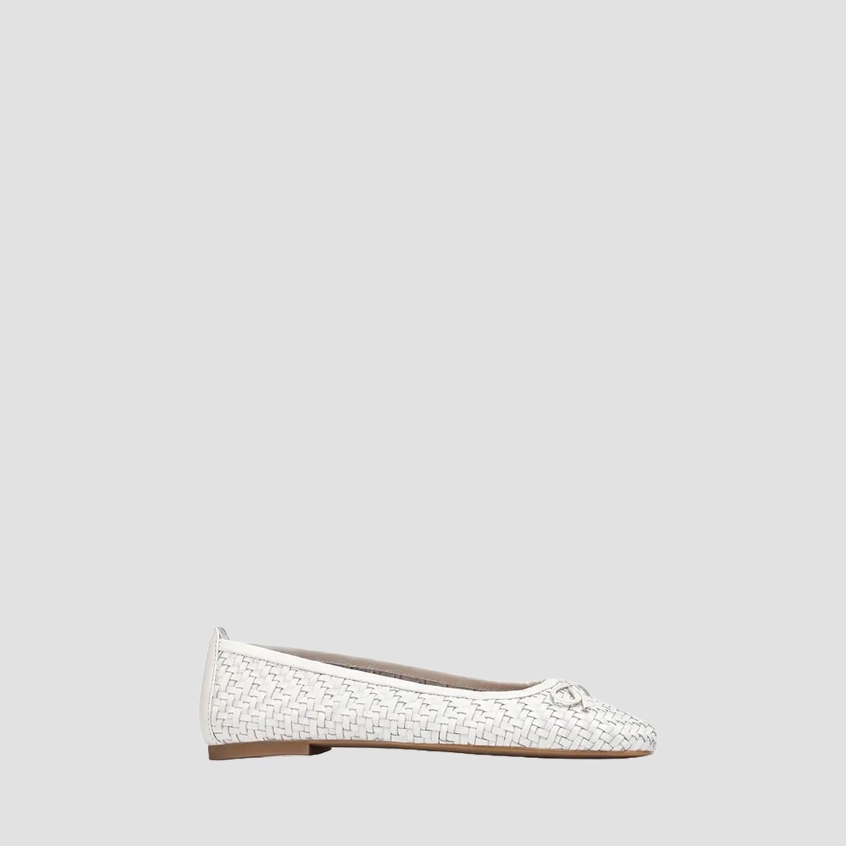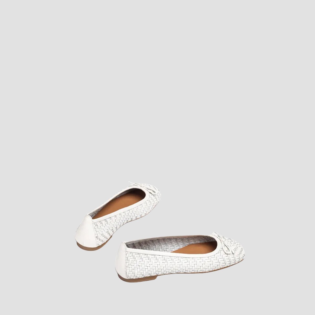 Flat square toe ballerina shoe. Made in braided leather. Matching tone bow and light, flexible and non-slip rubber sole. A perfect fusion between craftsmanship and innovation.