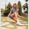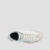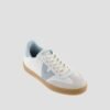 Women’s white trainers made of leather-effect material and suede pieces. Pastel-tone details on the V on the side and on the back piece. Translucent caramel-coloured sole for a touch of retro style. They also feature a more ergonomic insole, made from recycled materials, providing superior comfort with every step.