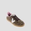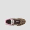 Women’s leopard print trainers. Contrasting white details on the V on the side and on the back piece, and pink inner lining. Translucent caramel-colored sole for a touch of retro style. They also feature a more ergonomic insole, made from recycled materials, providing superior comfort with every step.