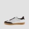 Unisex white trainers made from leather-effect material with suede panels. Tonal lace-up fastening and new cyclist-style toe design. The translucent caramel-coloured sole adds a retro touch. They also feature a more ergonomic insole, made from recycled materials, providing superior comfort with every step