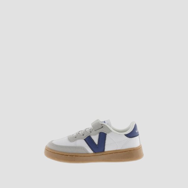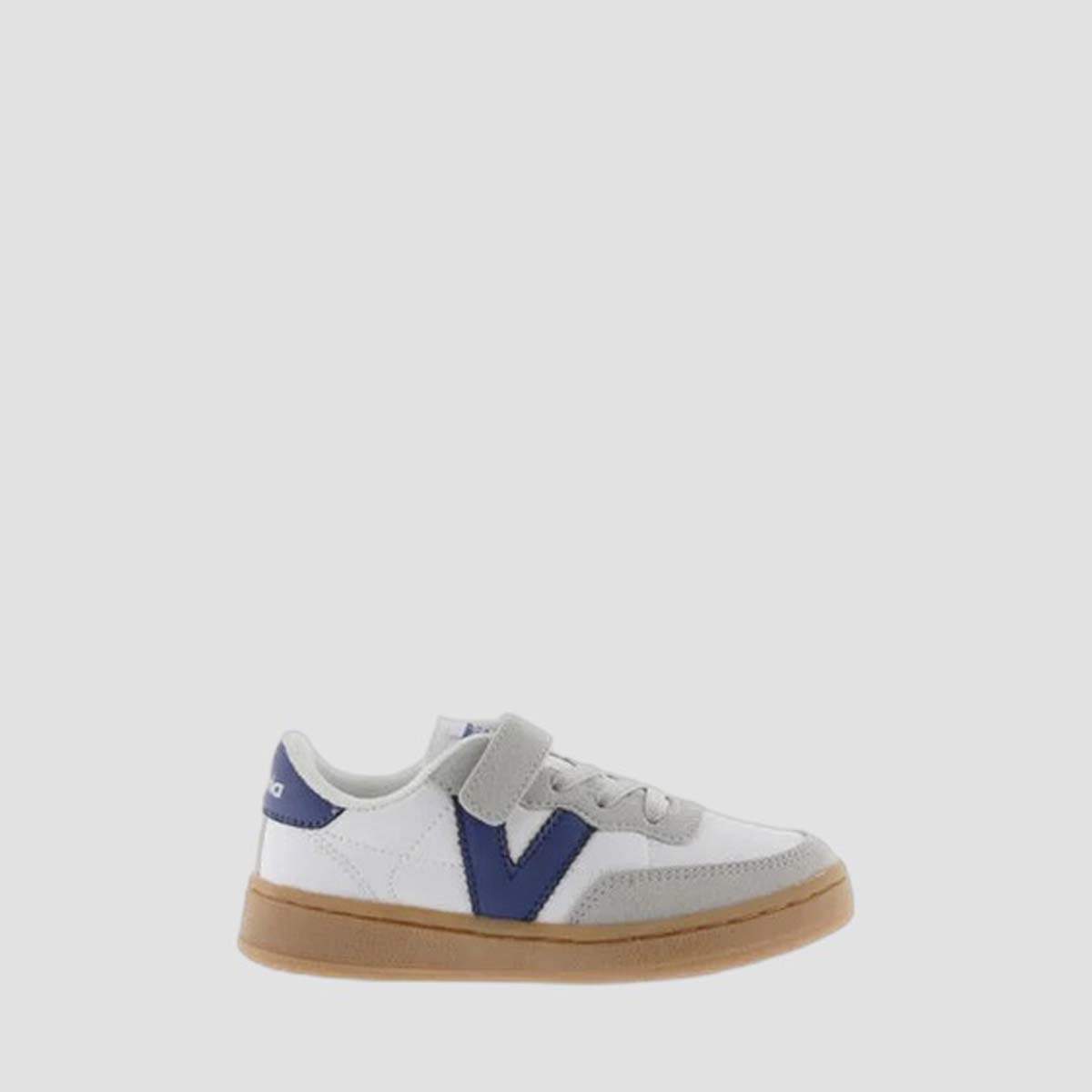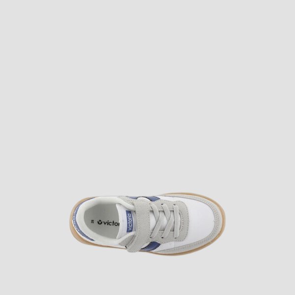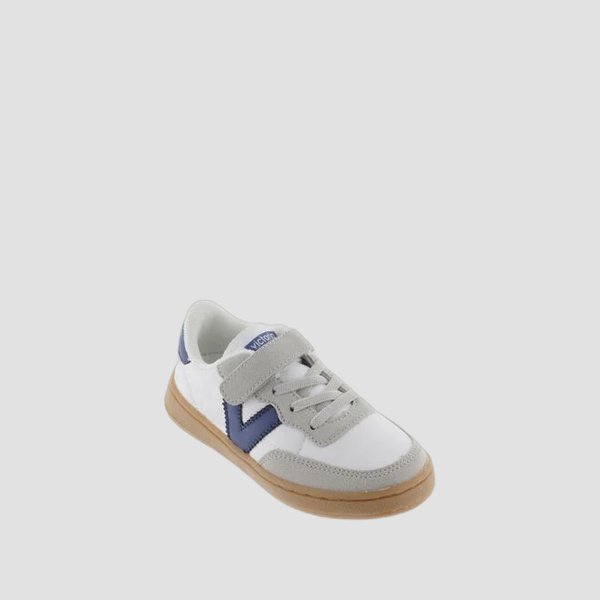 Sports sneakers for children made of leather-effect material and tone-on-tone suede-effect pieces, for a durable and modern style. Color detail on the side V and the heel piece. Closure with elastic laces in tone and a hook-and-loop strap for a comfortable fit and easy on/off. The caramel-colored sole adds a unique touch, completing the youthful and versatile design of these sneakers.
