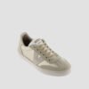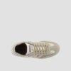 Gold colored trainers with an elegant crackle-effect finish for women, made in Spain with leather-effect material and split leather details. Stylish biker cut on the toe and matching lace-up fastening. Slightly toasted sole made from vegetable oils instead of mineral oils. Also includes a more ergonomic insole made from recycled materials.
