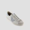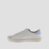 Unisex white trainers made in Spain in high quality soft leather. They also carry the distinction of a silver medal in the LWG (Leather Working Group) certification, which guarantees a responsible tanning process, with an efficient use of water, energy and sustainable waste management. Coloured details on the V on the side and on the back piece, and split leather toe. Their lightly toasted sole is made with vegetable oils rather than mineral oils, thus reducing the environmental impact. They also feature a more ergonomic insole, made from recycled materials, providing superior comfort with every step.