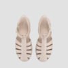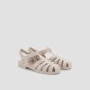 Flat sandals with a matching adjustable ankle strap and a buckle. With a non-slip, light and flexible rubber sole. Sandals with a special design, you cannot miss them!