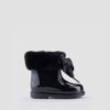 Perfect for rainy days, our glossy rain boots for kids are made from waterproof PVC. With a black bow and a glossy finish, these waterproof boots will keep your kid’s little feet happy on chilly and rainy days.