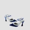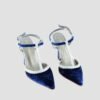 Light Navy velvet high heels. This model stands out for the combination of velvet with the braided leather that decorates the shoe. Its silhouette offers optimal support, perfect for safe walking. A perfect option to wear at the best events of the season.