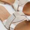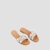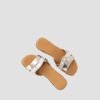 Square rounded toe flat slipper with wide vamp made in soft metallic leather.