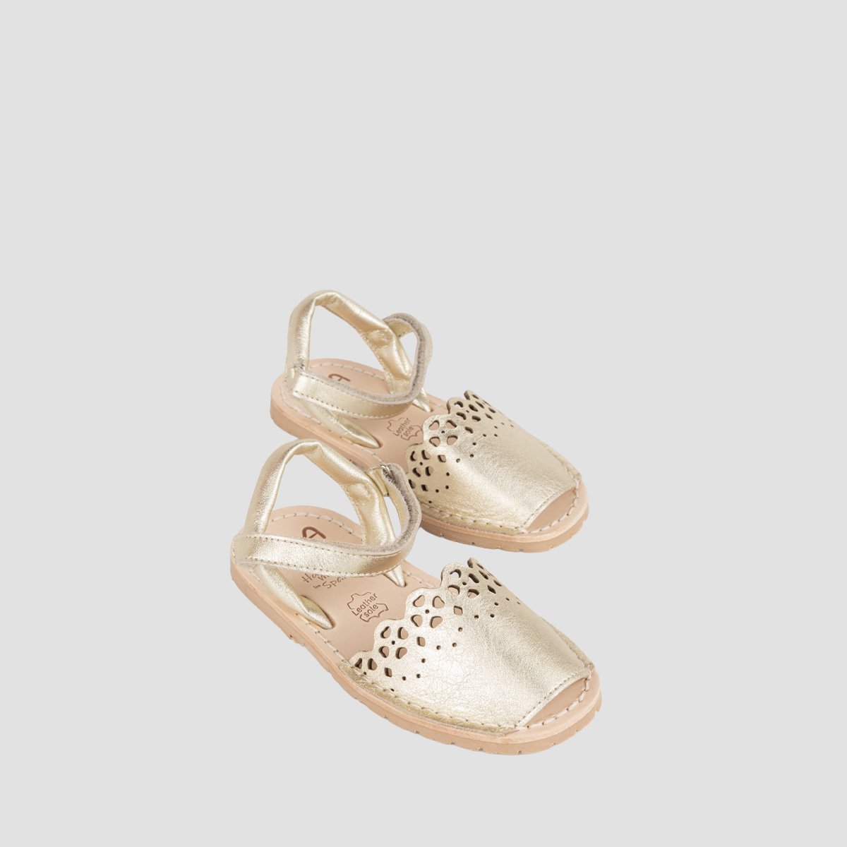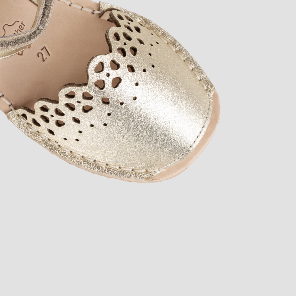 RIA menorquinas for the little ones. The gold of the upper and the back strap make these a unique pair of menorquinas. True to the traditional style of menorquinas, the caramel sole is made with premium quality materials. These sandals are ideal for everyday use as well as special occasions.
