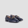Round toe loafer made in leather. Light, flexible and non-slip rubber sole. Metal horse bit trim on the instep. An essential classic in Unisa world.