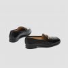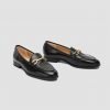 Black leather loafers, embellished with metallic band. With a 2cm non-slip, light and flexible sole. Comfortable and chic, perfect for your spring days.