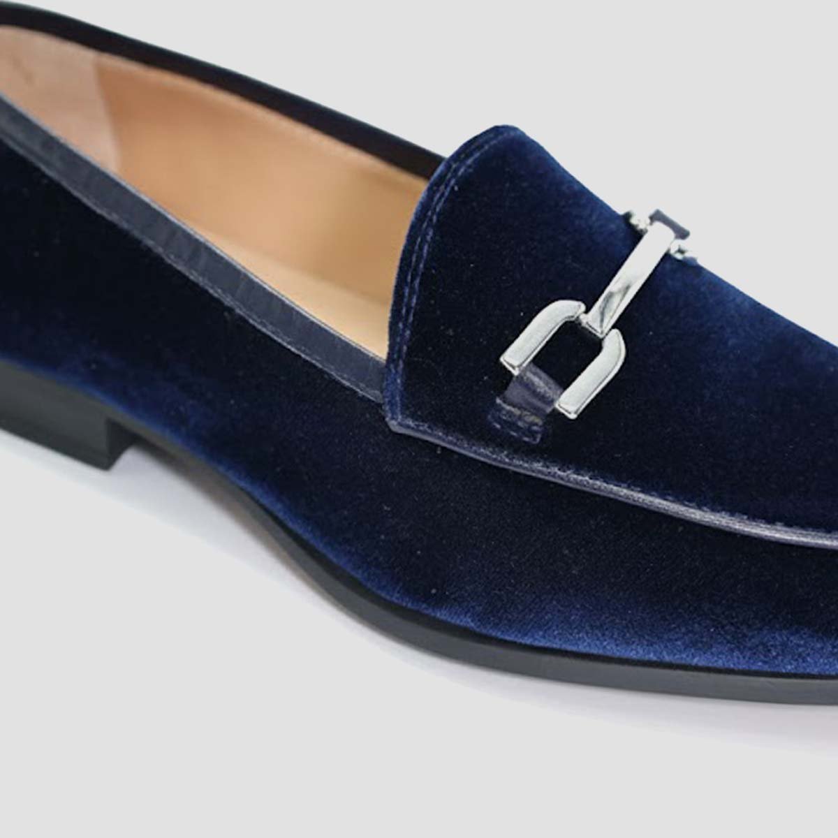 Round toe loafer made in suede. Metal horse bit trim on the instep. Light, flexible, non-slip rubber sole. Unisa essence in its pure state. Available in different colors and materials. Which one is your favorite?