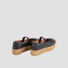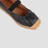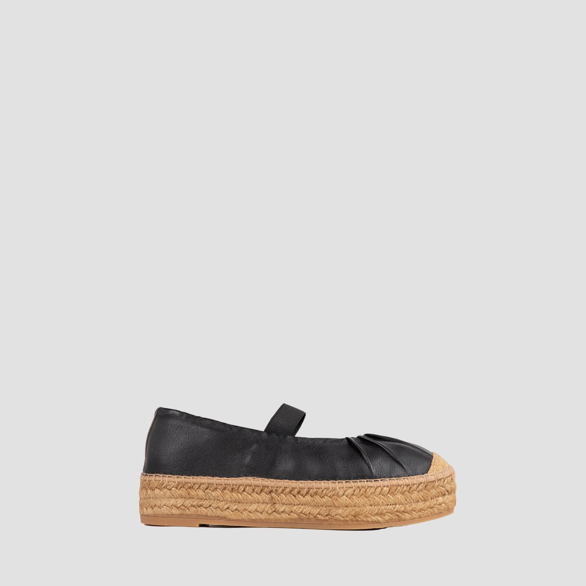 Our flat wedge ballerina-style espadrille with simple lines and a rubber strap. This pair is set on a classic braided jute sole with a layer of rubber underneath for extra grip.For days that start early and plans that carry on.
