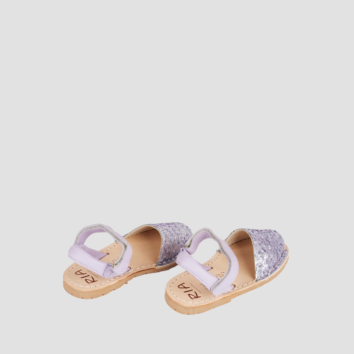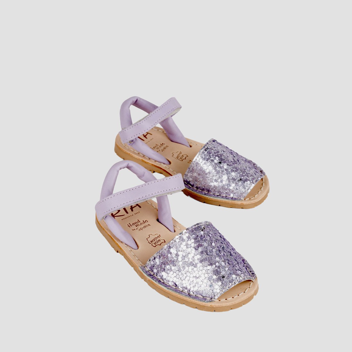 A traditional menorquinas with a fun design twist, young girls will stand out from the crowd in these sparkly sandals. The uppers are covered in multi colors glitter with a plain back strap to match the caramel soles and an extra ankle strap helps to keep little feet snug and secure.
