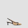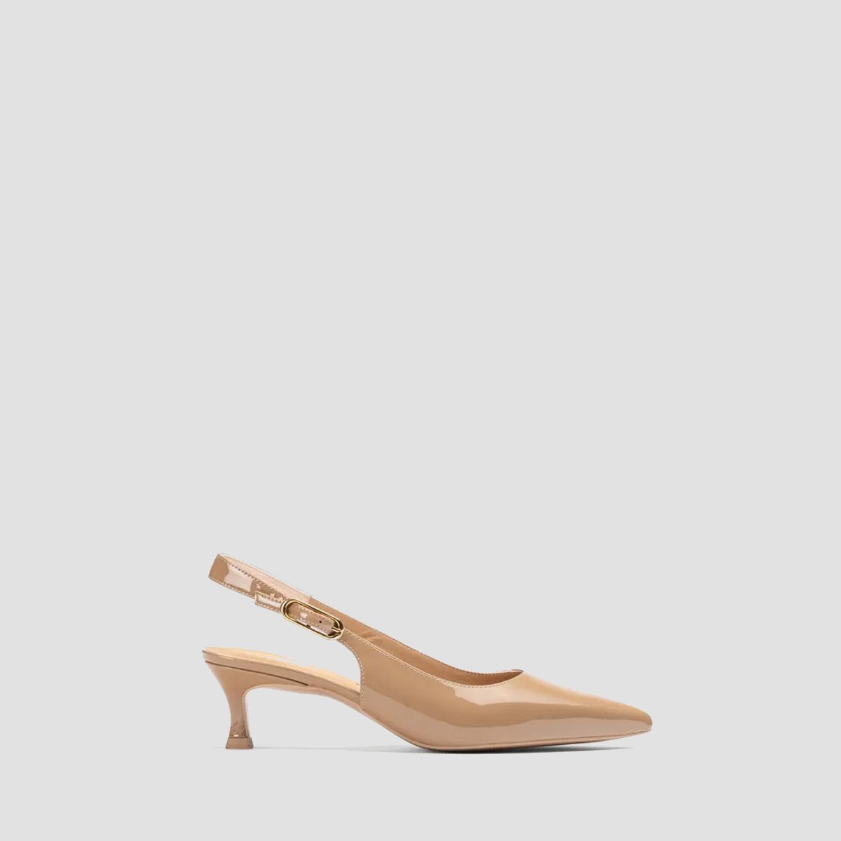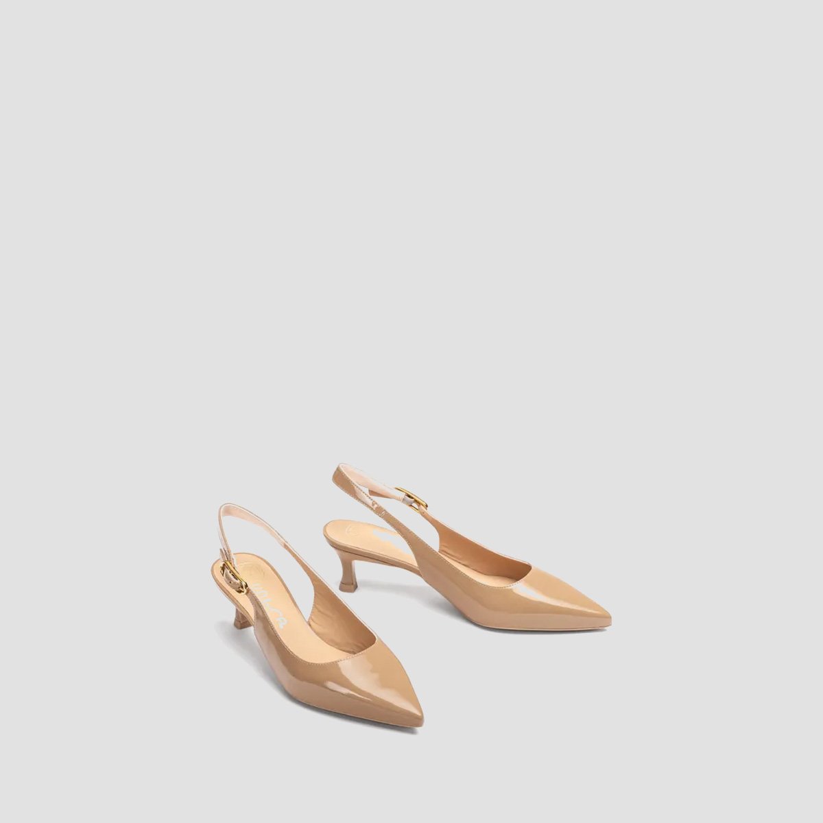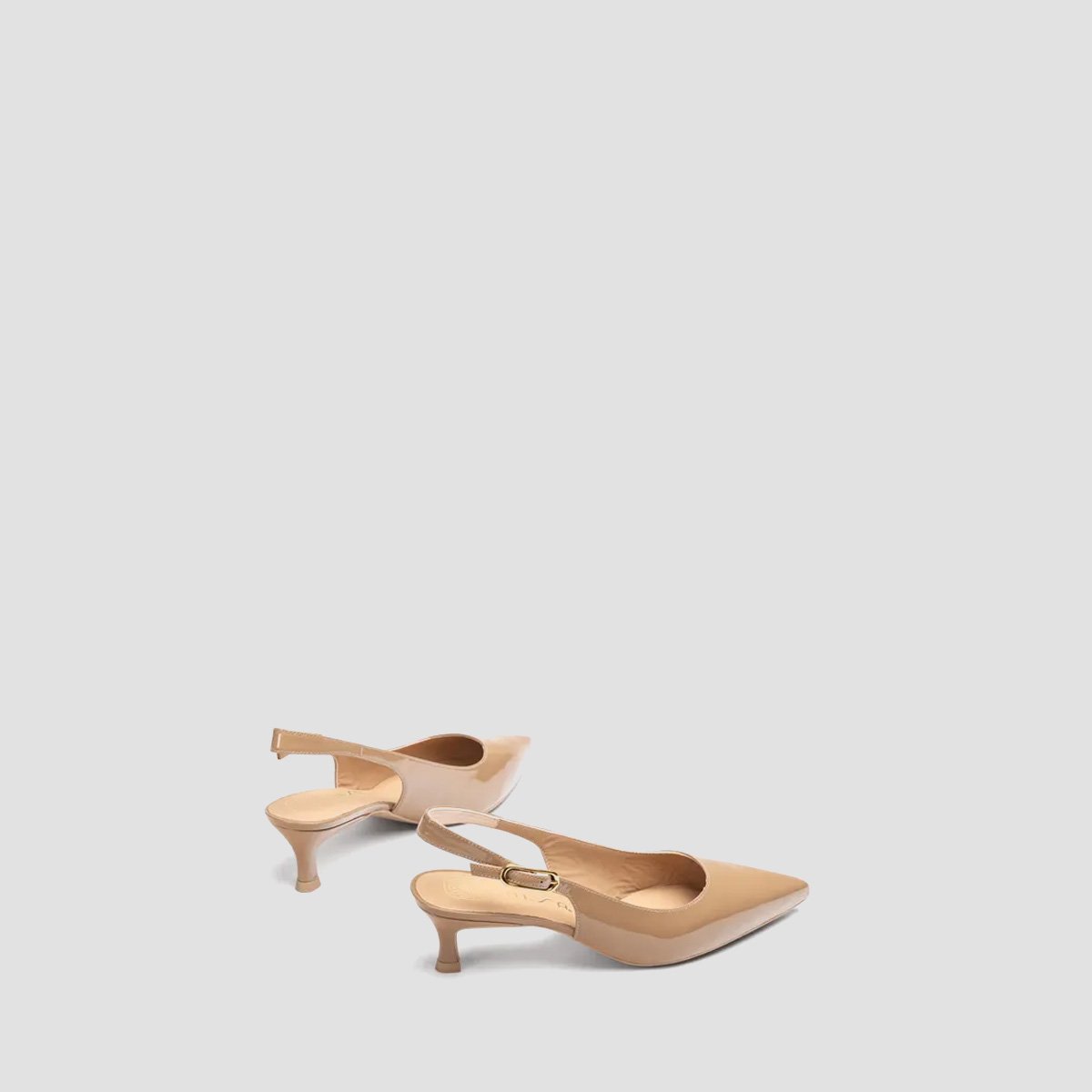 Pointed toe sling back shoe made in leather. Thin heel that is 5cm high in a matching tone. Strap that can be adjusted with a metal buckle. Light, flexible, non-slip rubber sole. With its practical design it can be combined with both casual and more formal looks.