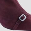Pointed toe ankle boot made in suede leather. Thin 5cm heel covered in a matching tone. Inner zip and metal buckle trim. Light, flexible, non-slip rubber sole. Perfect ankle boots for any day of the week