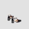 Square toe shoe made in leather. Central strap with a side buckle and open sides. Comfortable faux wood heel that is 5.5cm high. Light, flexible, non-slip rubber sole. Add character to your looks as well as comfort that lasts all day.