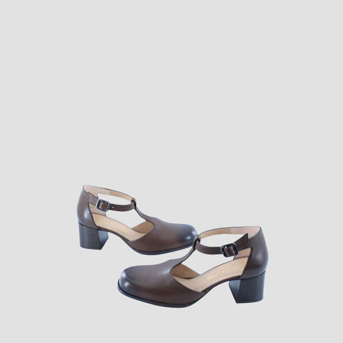 Square toe shoe made in leather. Central strap with a side buckle and open sides. Comfortable faux wood heel that is 5.5cm high. Light, flexible, non-slip rubber sole. Add character to your looks as well as comfort that lasts all day.