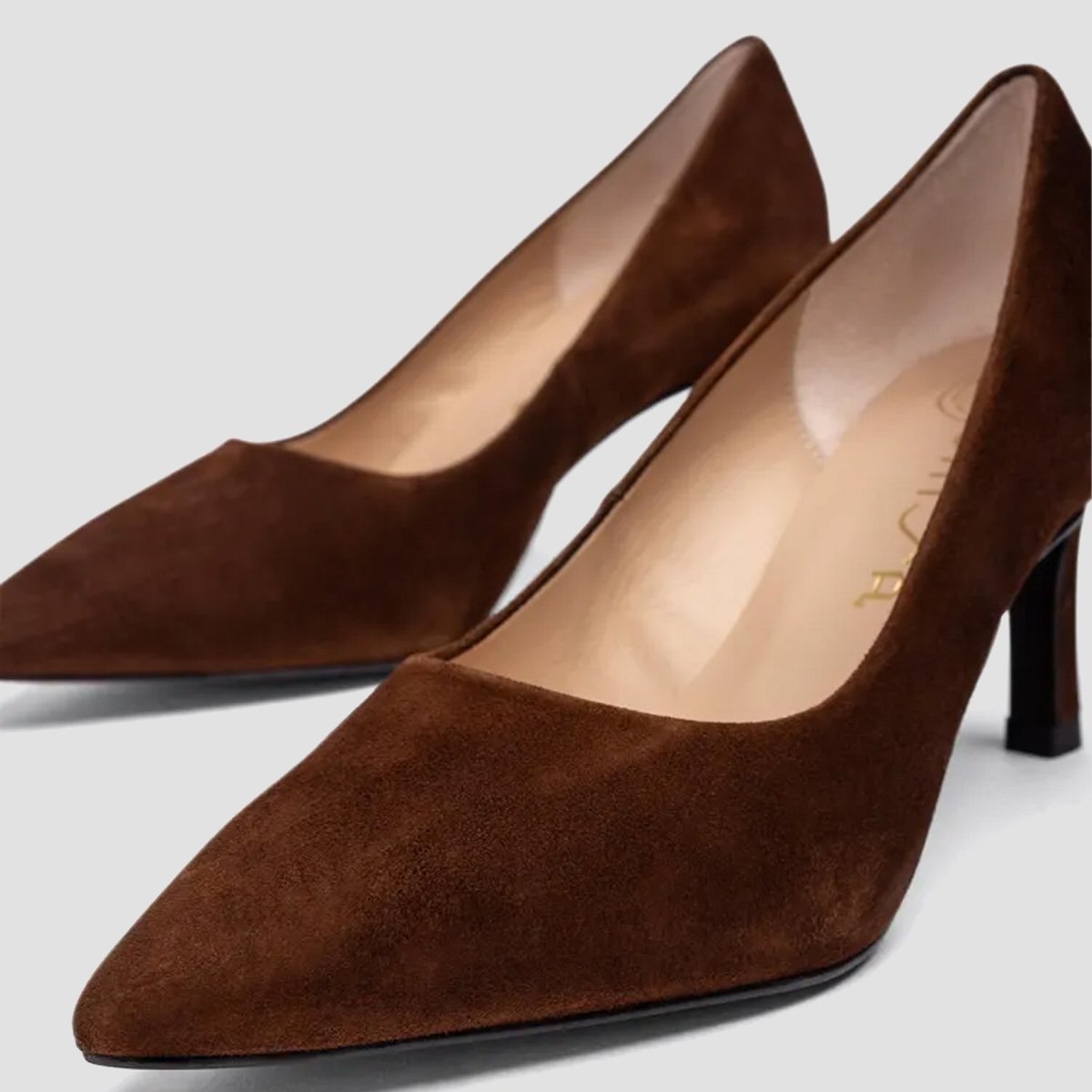 Pointed toe pump made in leather. High throat and a thin heel that is 7cm high in a matching tone. Light, flexible, non-slip rubber sole. A basic must-have in your wardrobe.