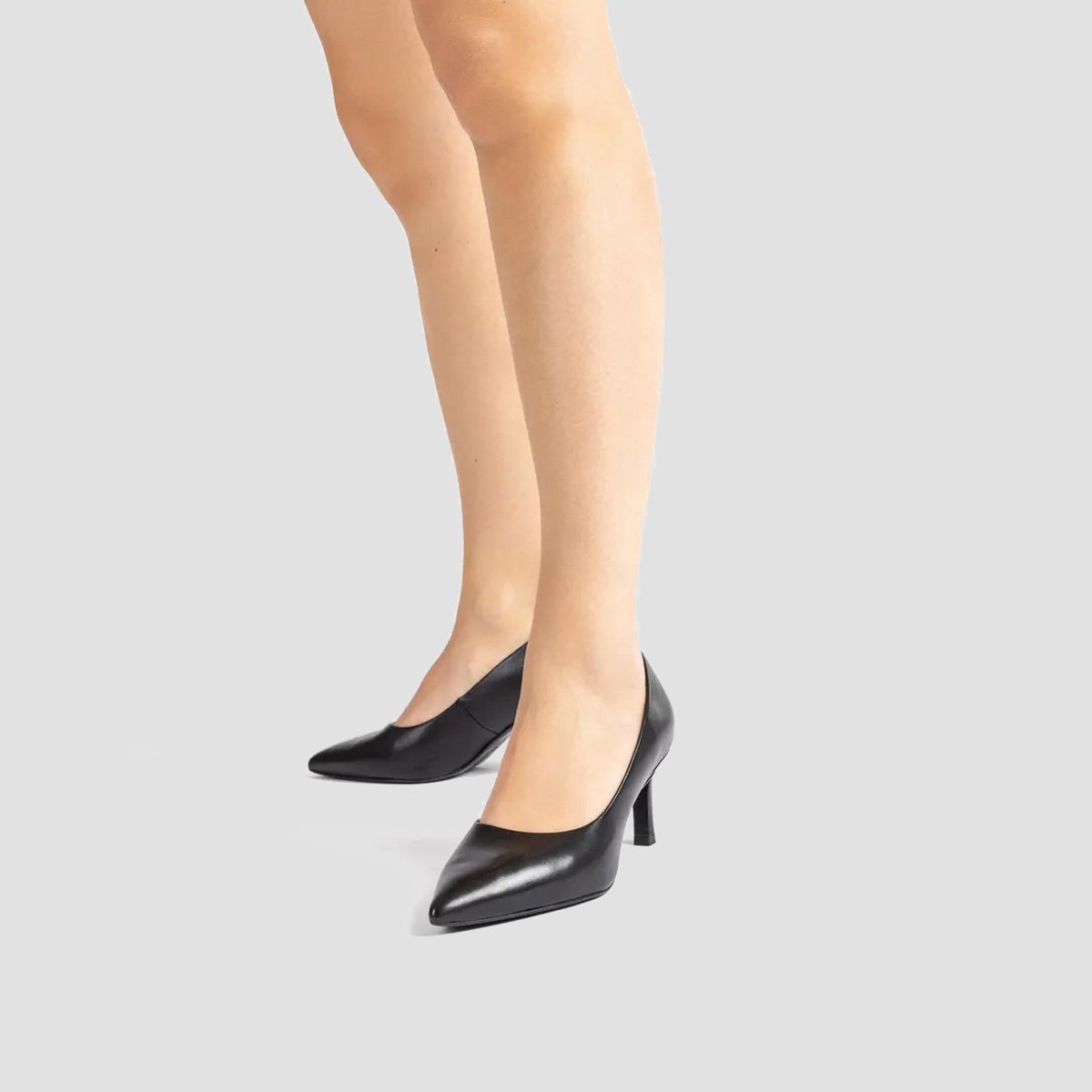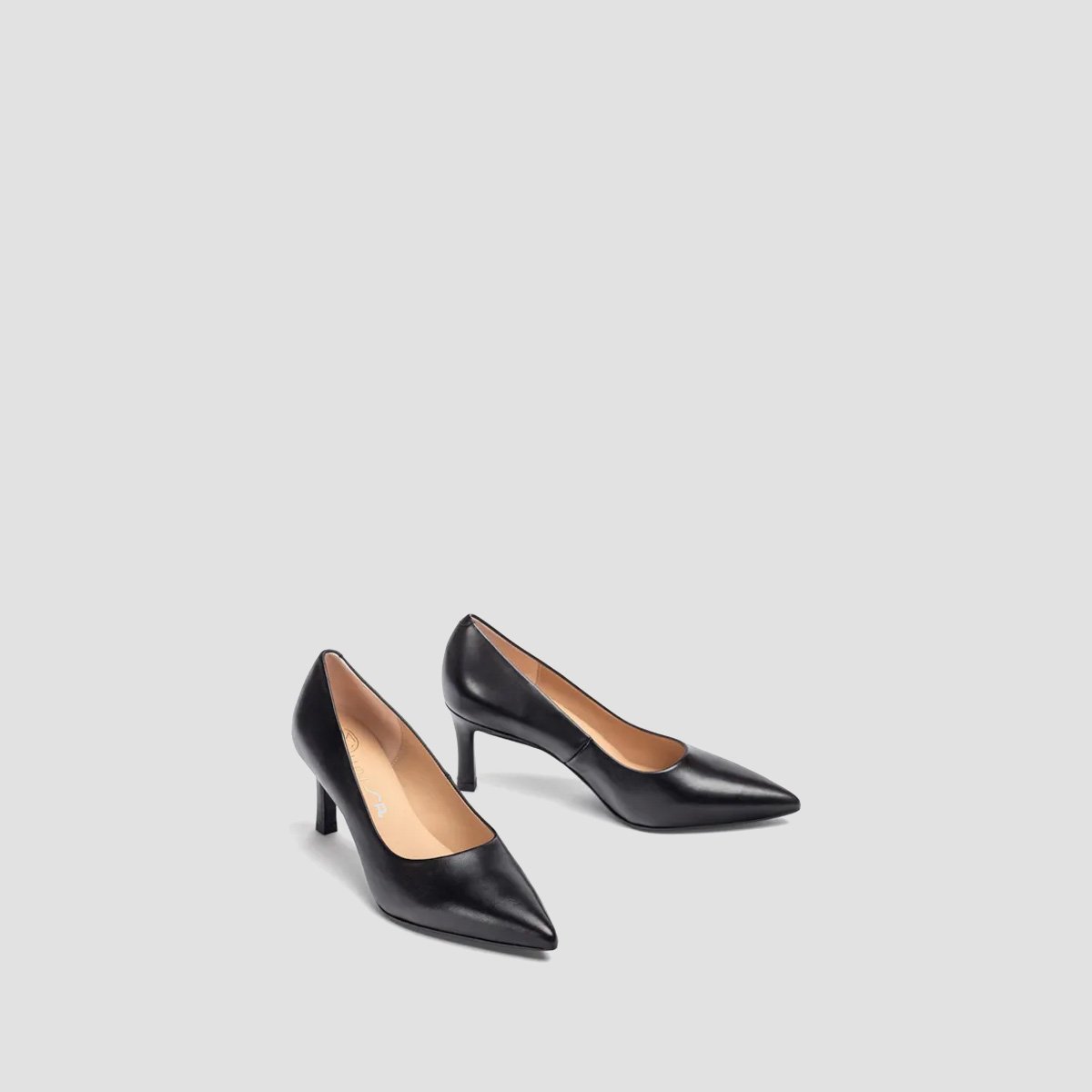 Pointed toe pump made in leather. High throat and a thin heel that is 7cm high in a matching tone. Light, flexible, non-slip rubber sole. A basic must-have in your wardrobe.