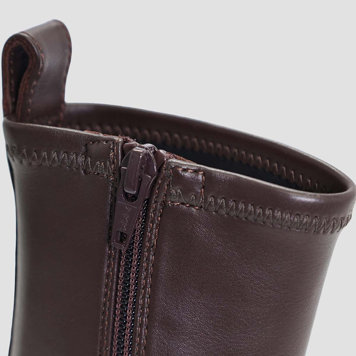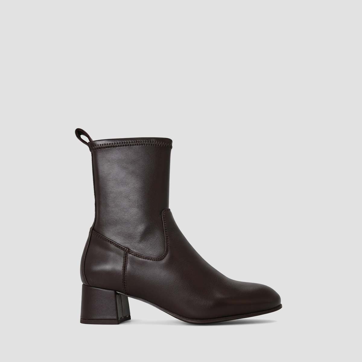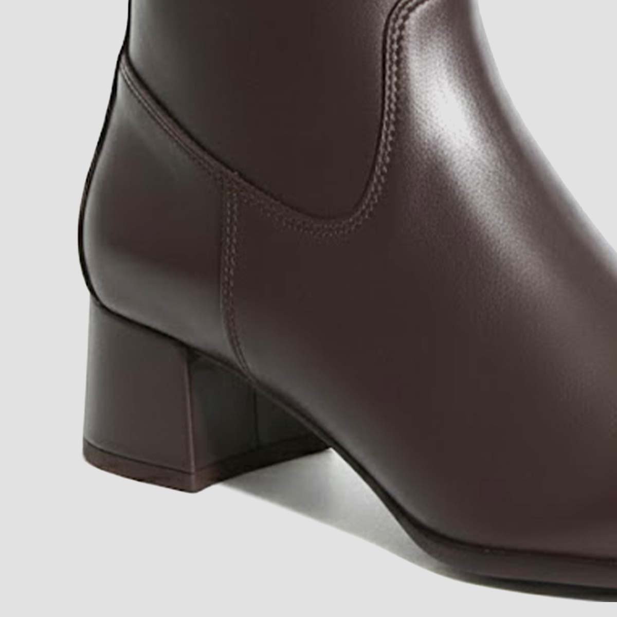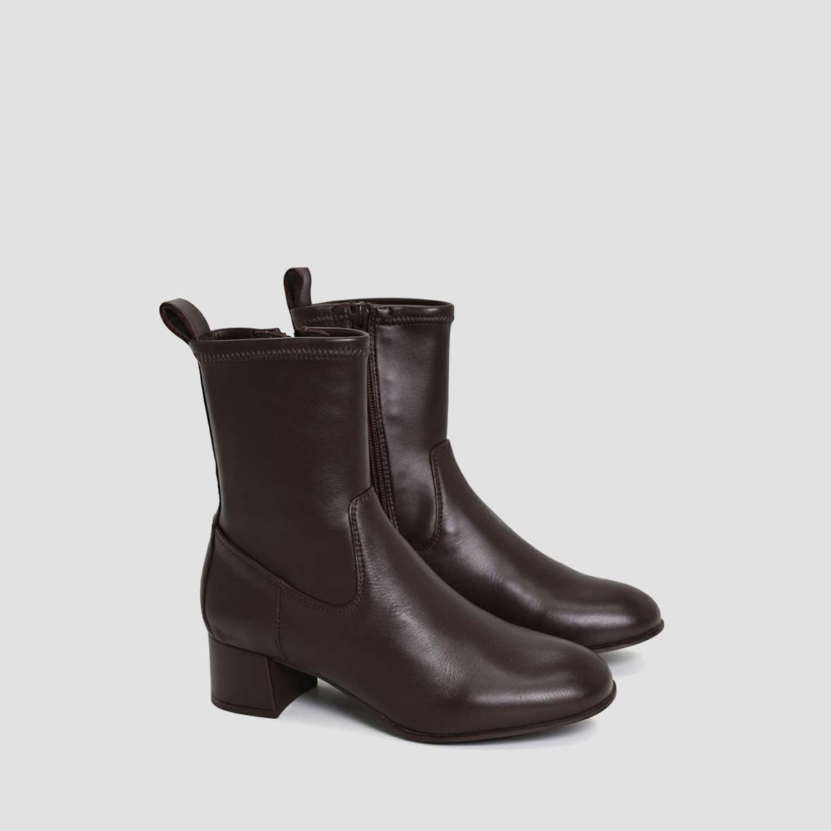 Square toe ankle boot made in leather. Faux leather stretch fabric shaft. Comfortable 4.5cm high heel in a matching tone and an inner zip. Light, flexible, non-slip rubber sole. You won’t want to wear any other ankle boots