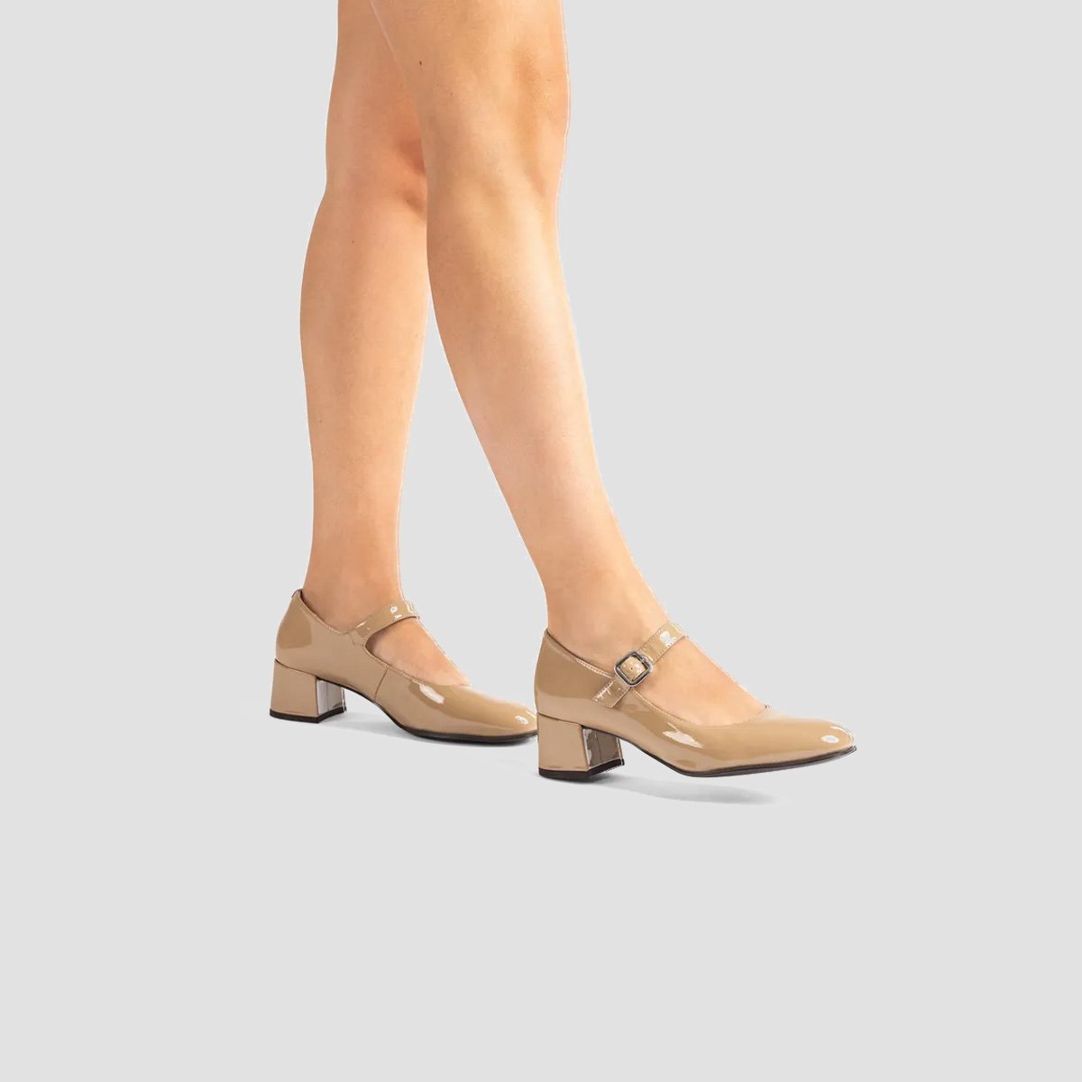 Round toe Mary Jane shoe made in patent leather. Strap that can be adjusted with the metal buckle. Comfortable wide heel that is 5cm high in a matching tone. Light, flexible, non-slip rubber sole. Our LINSEY Mary Janes will be must-haves in your wardrobe this winter
