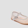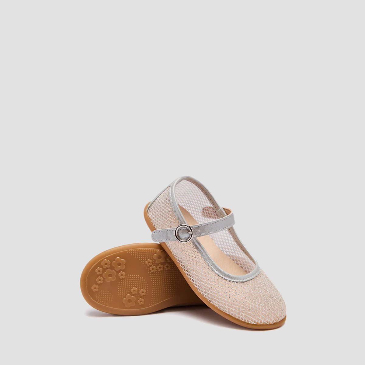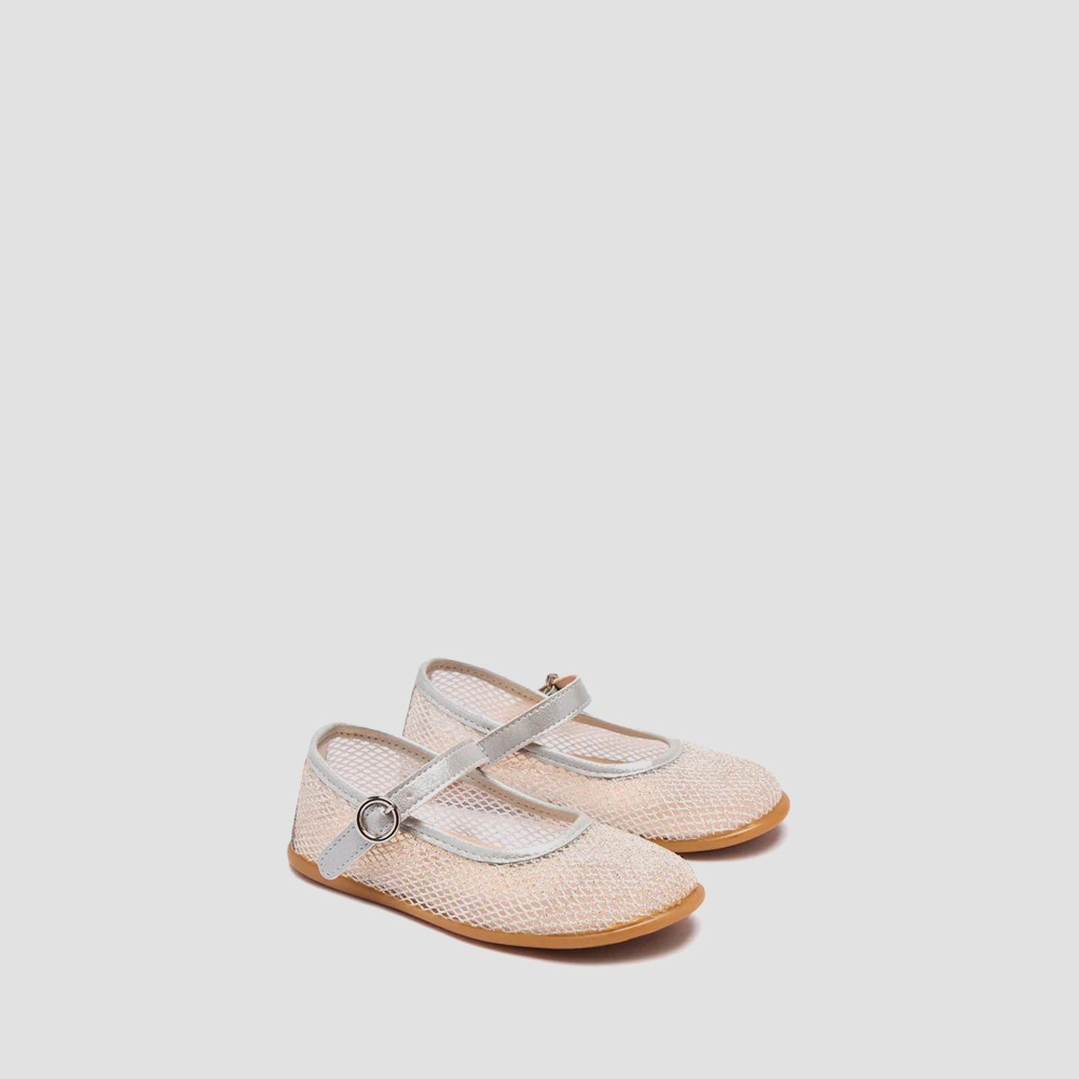 Silver mesh ballet flats with a soft shimmer, ideal for ceremonies and special occasions thanks to their elegant and original design. They are lightweight and breathable thanks to their airy fabric and feature a buckle closure for a secure and comfortable fit. The flat sole promotes a natural stride, perfect for wearing them for hours.