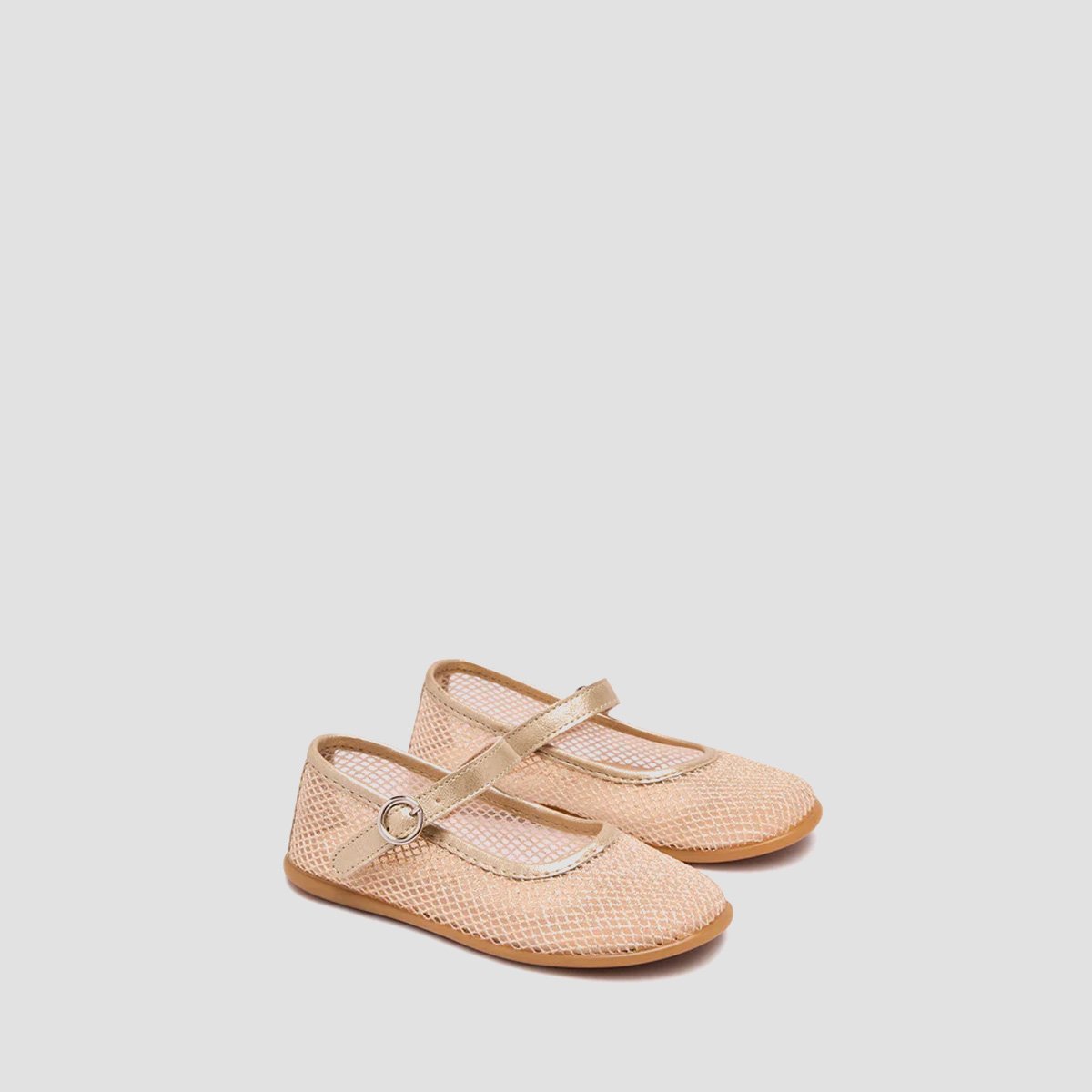 Silver mesh ballet flats with a soft shimmer, ideal for ceremonies and special occasions thanks to their elegant and original design. They are lightweight and breathable thanks to their airy fabric and feature a buckle closure for a secure and comfortable fit. The flat sole promotes a natural stride, perfect for wearing them for hours.