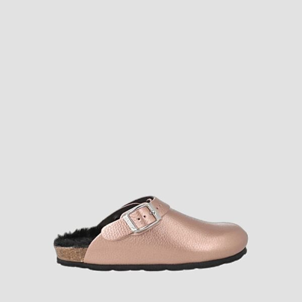 This children’s house slipper clog is Made of PETA vegan approved synthetic material with soft black fur on the inside.