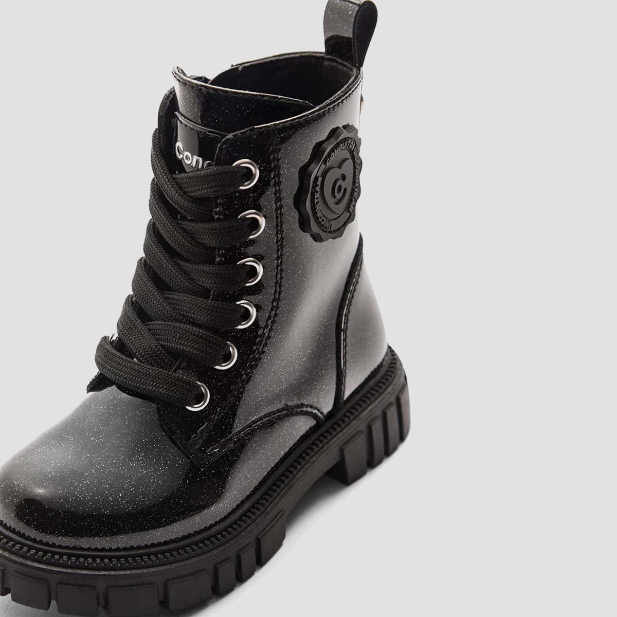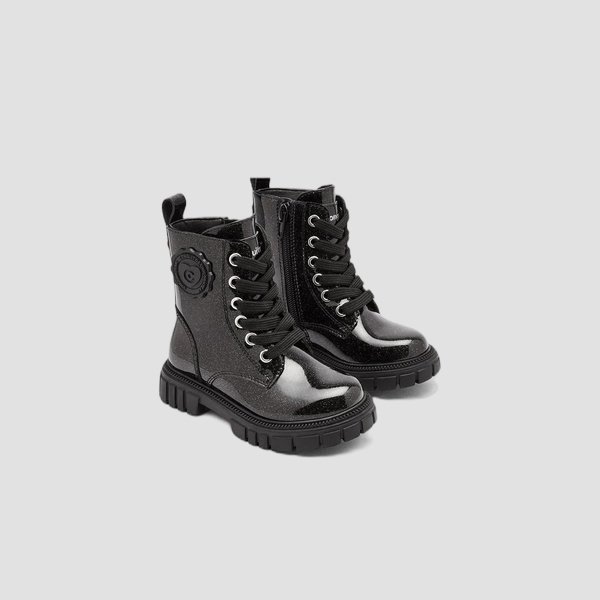The Black Military Patent Boots have a bold and shiny personality that stands out in every step. Their glossy black patent finish gives them a modern look that’s easy to match and perfect for little ones beginning to walk in style.