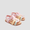 The Pink / Multi Champion Respectful Sandals are designed to support the natural development of little feet, providing a comfortable fit and total freedom of movement. Their mix of pink, yellow, and pastel blue makes them a sweet and versatile choice for summer days.