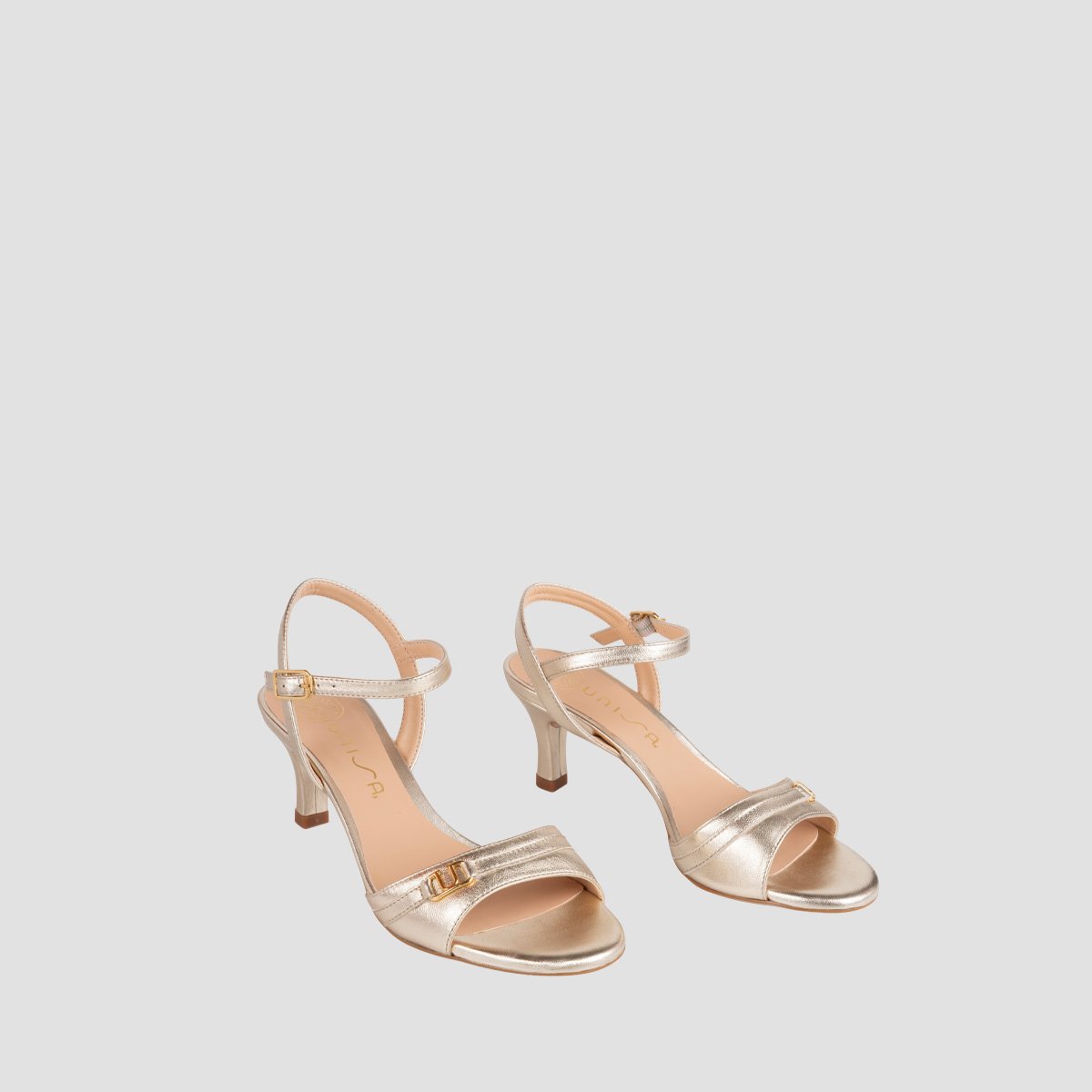 Round toe sandal made in metallic leather. Thin leather straps in a matching tone. Thin heel that is 6.5cm high. Light, flexible, non-slip rubber sole. A timeless and versatile accessory, ideal to enhance your looks with a feminine and elegant touch.