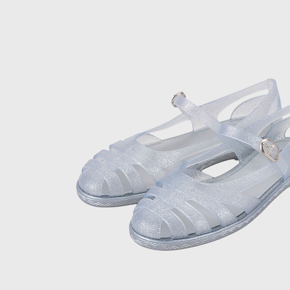 Flat ‘Mary Jane’ style ballerina with simulated jute detail on the sole, matt finish and buckle closure. Sandals with a special design, you cannot miss them!