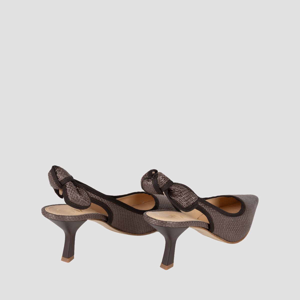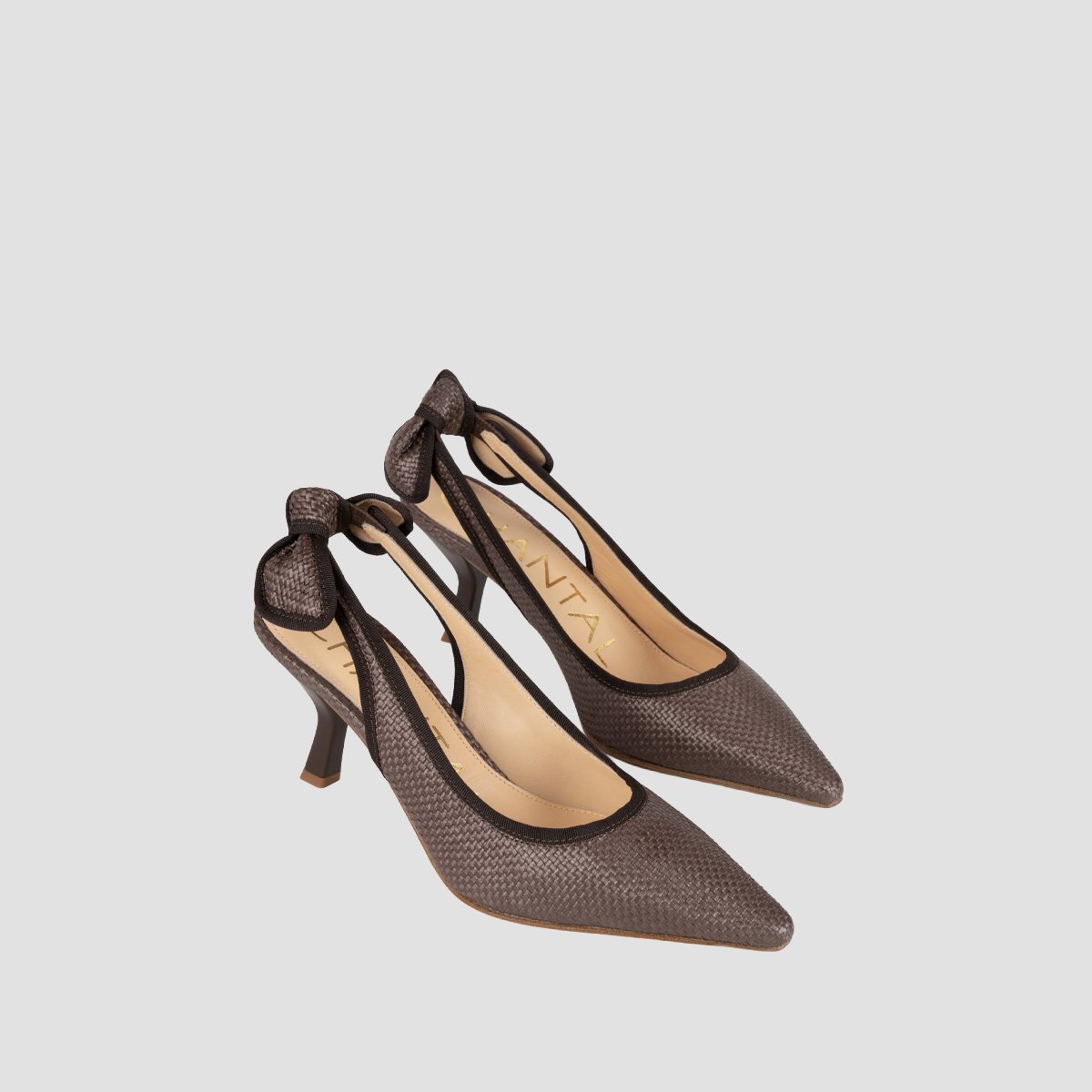 Slingback leather pump with a pointed toe and a knotted bow on the back to add an elegant touch to it . Light, flexible and non-slip rubber sole. A perfect sandal to round off any look with distinction.