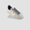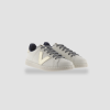 New tennis trainers in off-white faux leather. Featuring a matching metal look back and side logo, with black and white checked laces for an extra original edge