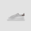 Trainer in leather-effect material with the V of victoria on the side, fastened by white laces.