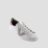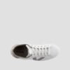 Women’s white trainers made in Spain from high quality cowhide leather. They also carry the distinction of a silver medal in the LWG (Leather Working Group) certification, which guarantees a responsible tanning process, with an efficient use of water, energy and sustainable waste management. Side logo and back piece in textured glitter. White laces to fasten and metallic label on the tongue. With vegetable oils instead of mineral oils in the composition of their soles, thus reducing the environmental impact