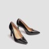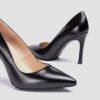 Pointed toe pump made in leather. Matching tone heel that is 9.5cm high. Light, flexible and non-slip rubber sole. Make the difference with your style.