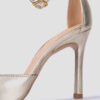 Fancy pump with a pointed toe made in leather. 10 cm high heel painted in a matching colour and a light, flexible and non-slip rubber sole. Ankle strap can be adjusted with the metal buckle. Make your feet shine this summer!