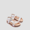 Comfort and style that sparkle! The White Strips Bio Sandals stand out with their fun, modern design featuring pastel-colored straps with leopard print and a touch of glitter. These sandals are perfect for anyone looking for fresh, personality-filled footwear for sunny days.
