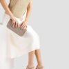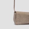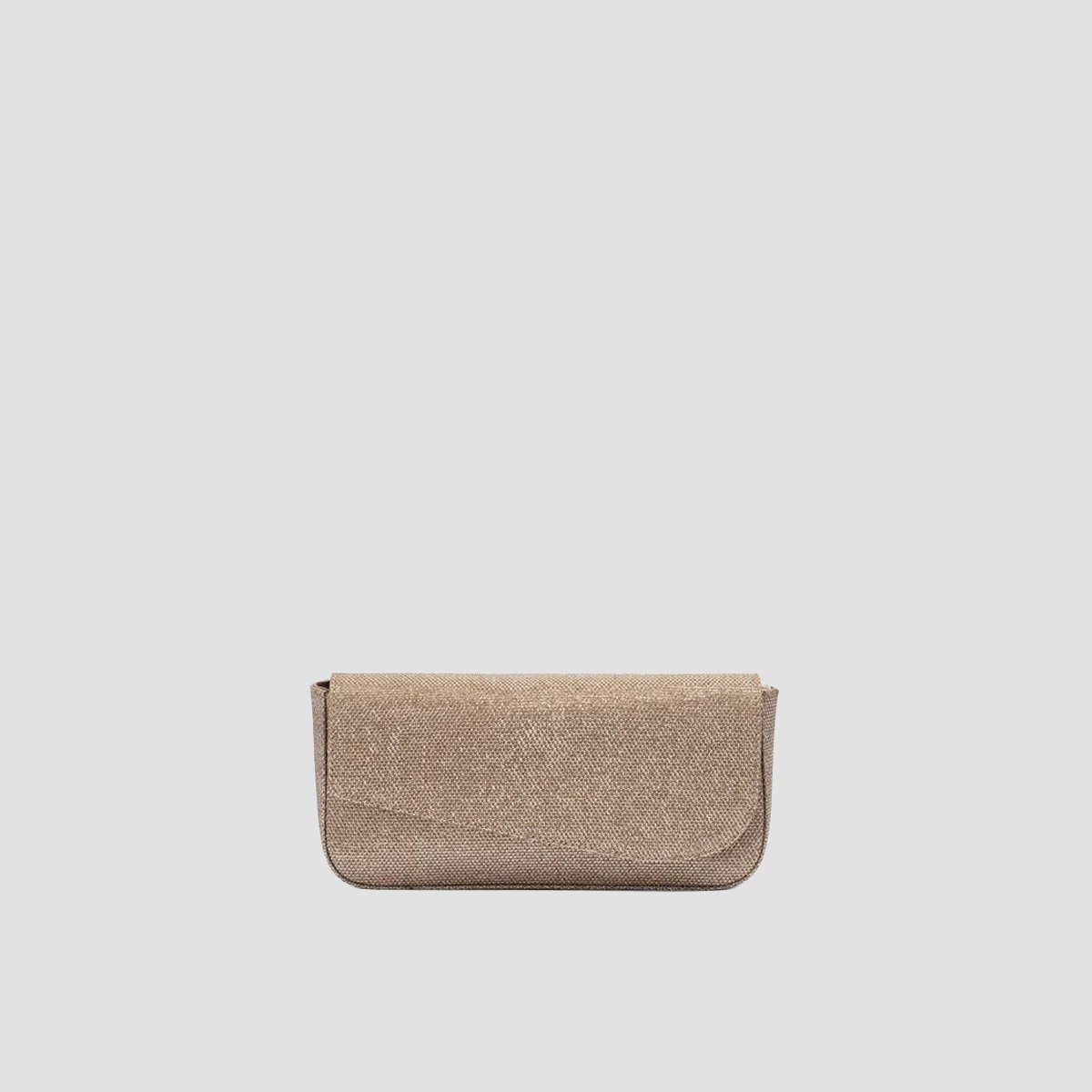 Small handbag made in shiny fabric. Asymmetrical flap with a magnetic snap closure. Pocket inside with a zip and a removable crossbody strap in a matching tone.